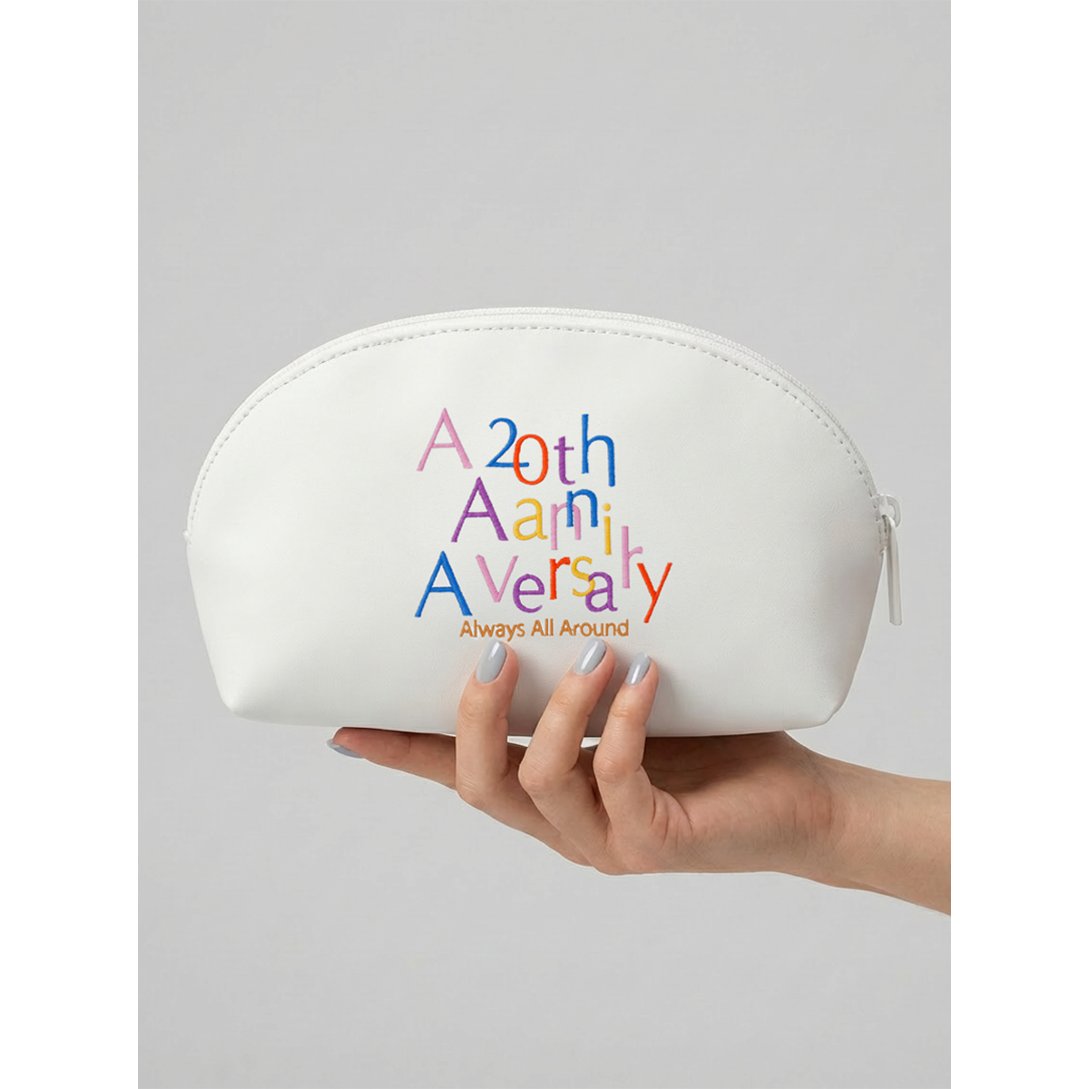 高級感のあるフェイクレザー素材にAAA20周年アニバーサリーロゴ刺繍入りのポーチ。